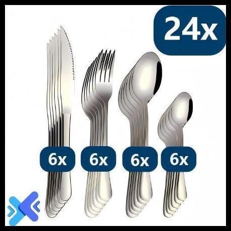 24 Peças Talheres De Aço Inox Garfo Faqueiro Colher De Sobremesa Cozinhas Casa — Visão Geral