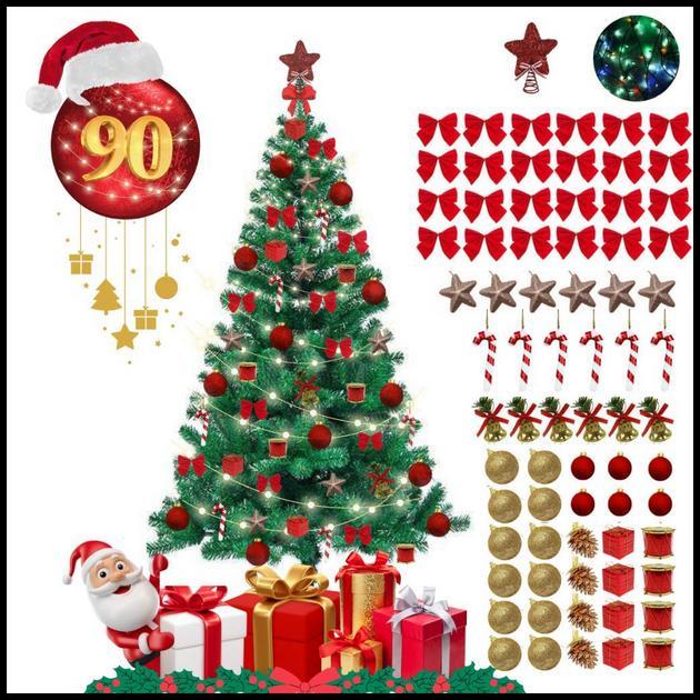 Arvore De Natal 150cm Verde 220 Galhos Cheia + 90 Enfeites e Pisca 110V ou 220V Decoração Completa — Visão Geral