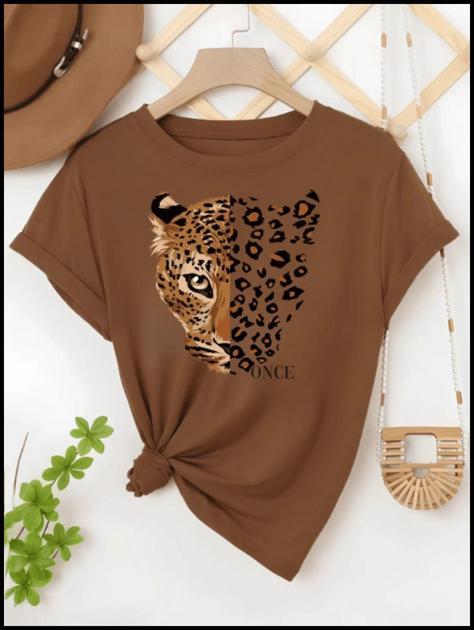 Camiseta Feminina Blusinha 100% Algodão Com Estampa Onça Once Animal Print Fashion