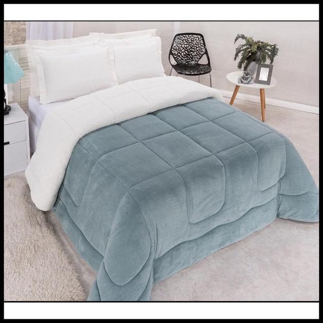 Tipo: Coberdrom dupla face com acabamento Sherpa (pele de carneiro sintética) e face externa em tecido macio.