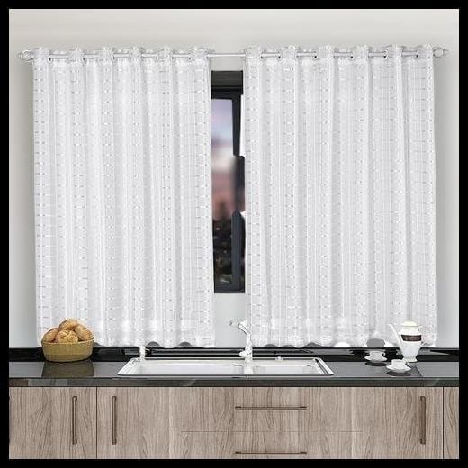 Cortina Voil Xadrez Para Cozinha 2,80 X 1,20 Com Forro de Microfibra – Baroni Decor Home