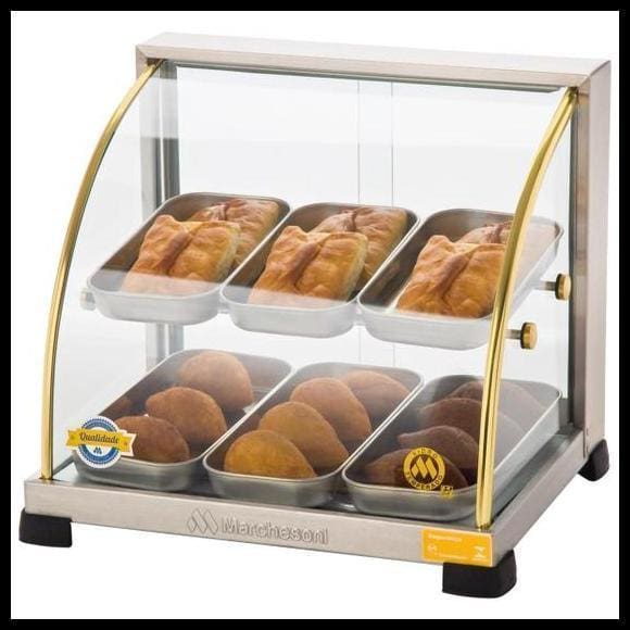 Com seis bandejas de capacidade, o modelo oferece um excelente aproveitamento de espaço, permitindo a exposição de uma variedade de itens, desde coxinhas e pães de queijo até croissants e esfirras, sempre com uma aparência convidativa e apetitosa.