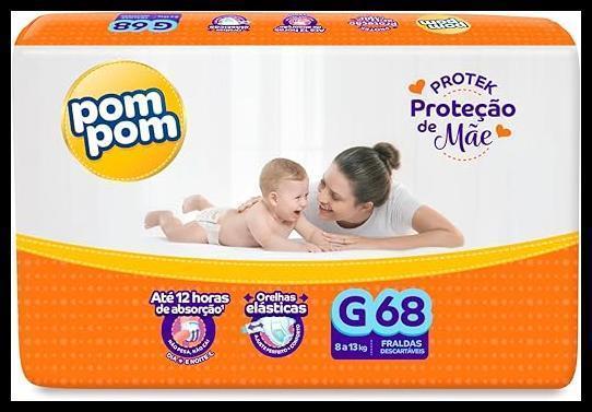 Fralda Pom Pom Protek Proteção de Mãe Hiper G 68 Unidades
