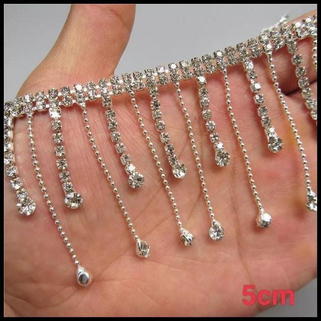 Pessoas que trabalham com a confecção de roupas para eventos festivos, como casamentos e formaturas, irão se beneficiar enormemente da elegância proporcionada por este produto. A Franja Corrente de Strass Pingente pode ser facilmente incorporada em vestidos, saias e acessórios, garantindo um visual deslumbrante.