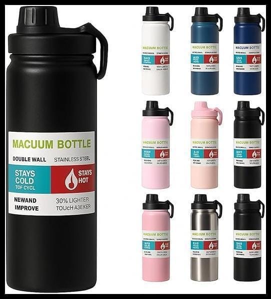 • Aço Inoxidável Premium: Construída com material de alta qualidade, a garrafa oferece durabilidade excepcional e resistência à corrosão. O aço inoxidável também é inerte, o que significa que não altera o sabor da sua bebida e é fácil de limpar, garantindo higiene e segurança.