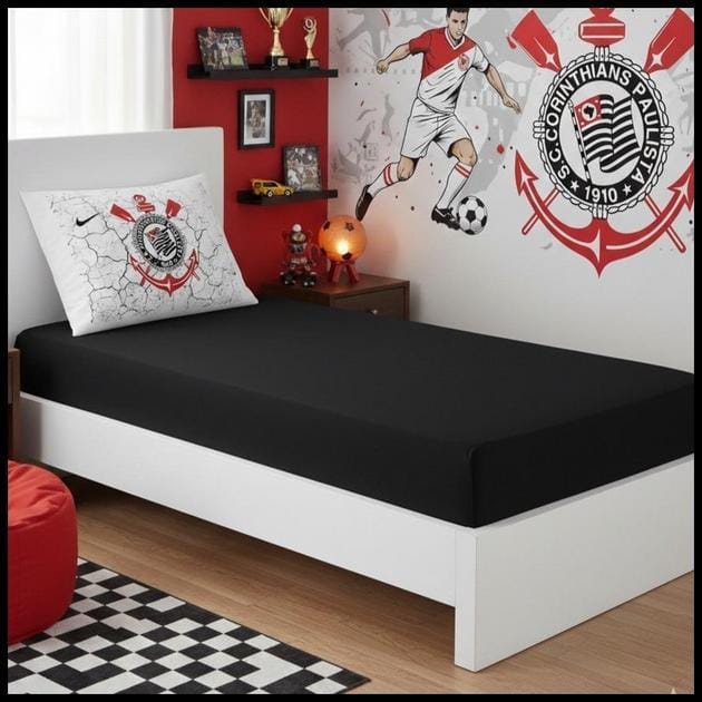 Design Temático Exclusivo – Corinthians e Outros Times: A originalidade deste conjunto reside na sua temática. Com as cores vibrantes e o escudo do Corinthians (e opções para outros grandes times), o quarto ganha uma atmosfera única, refletindo a paixão pelo esporte. É mais do que um lençol; é uma declaração de amor ao time.