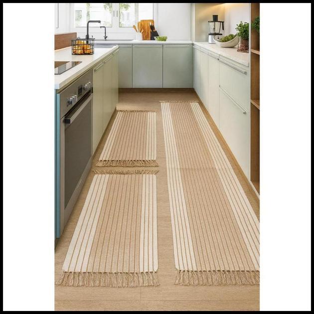 O Jogo de Passadeira de Tear, Tapete de Cozinha, 3 Peças é a escolha perfeita para proprietários que buscam uma combinação de estilo, segurança e facilidade de manutenção em sua cozinha. É ideal para aqueles que valorizam produtos fabricados com materiais naturais e que apreciam o toque artesanal em sua decoração.