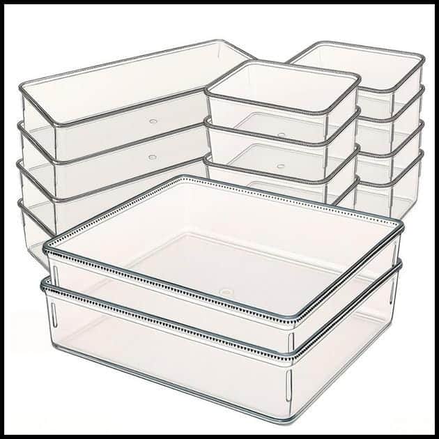 Kit 14 Organizadoras em Acrílico Transparente Multiuso para Casa e Escritório