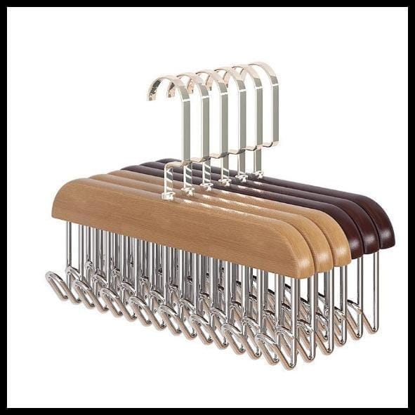 Kit 2 Cabides de Madeira Para Cintos Gravatas Cachecóis Sutiãs Colares Organizador Com 8 Ganchos