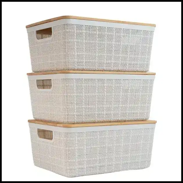 Kit 3 caixas organizadoras com tampa de bambu multiuso 4L brancas – Oikos