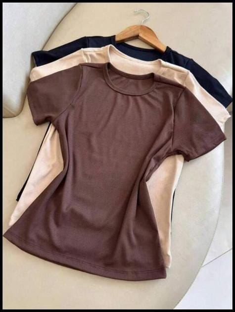 kit 3 camisetas feminina manga curta gola careca canelado — Visão Geral