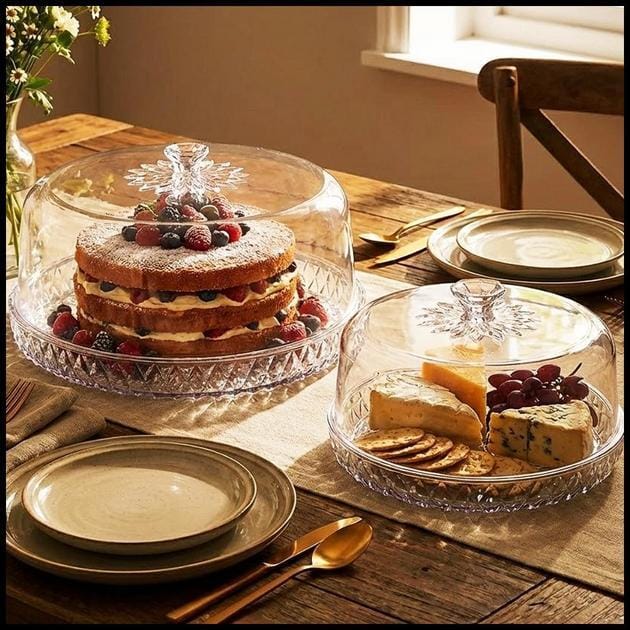 Kit Boleira e Queijeira Mesa Posta Glamour Acrílico com Tampa Decoração