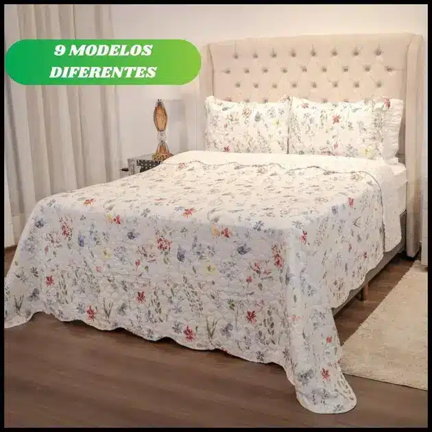 Colcha e cobre-leito floral matelado apresenta acabamento caprichado e toque macio que valoriza qualquer quarto. O kit com três peças traz estampas delicadas e percal de boa durabilidade, oferecendo um visual elegante e aconchegante para camas Casal, Queen e King; adequa-se perfeitamente a cama box. A manutenção é prática, facilitando o dia a dia. Com mais de 2.214 vendas e avaliação média de 4,9/5, confirma-se a preferência dos clientes. Oferta com desconto e estoque exclusivo na Shopee torna a compra atraente para quem busca renovar a decoração com qualidade e economia. Ideal para presente ou para transformar o ambiente sem gastar muito.
