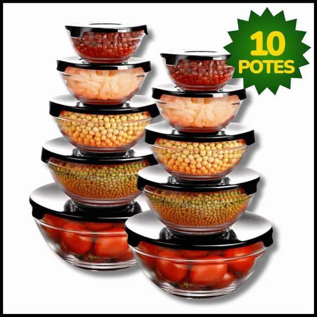 Composição: recipientes em vidro resistente + tampas vedantes (material das tampas pode variar).