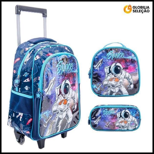 Kit Mochila Escolar Infantil de Rodinhas Menino Bolsa Resistente Impermeável Com Lancheira e Estojo BMA9719U-KIT