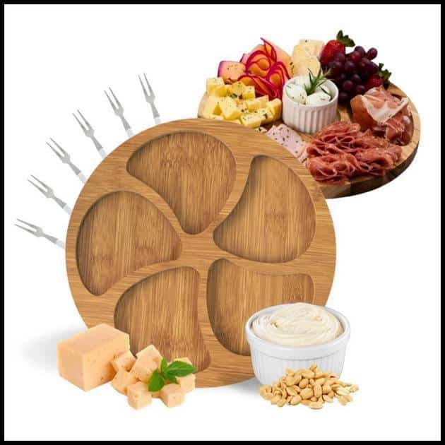 Kit Petisqueira Redonda Para Frios Queijo Com Molheira Ramekin e Garfinhos para Petiscos
