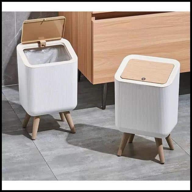 Lixeira Com Tampa De Pressão Moderna E Pés De Madeira