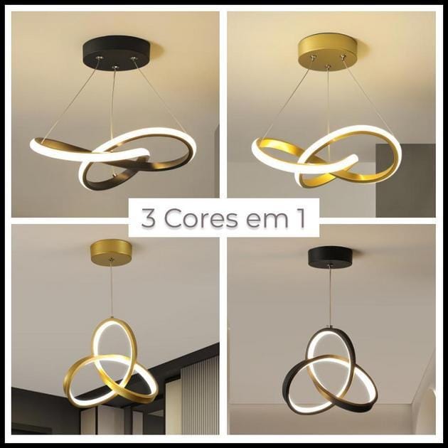 Luminária de Teto Lustre Pendente LED Moderno com Três Cores de Luz para Sala, Quarto, Cozinha e Ambientes Internos — Visão Geral