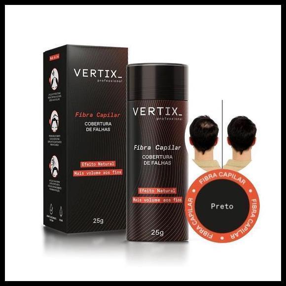 Maquiagem de Cabelo Fibra Capilar Corbertura de Falhas Cabelo Preto Vertix 25g — Visão Geral
