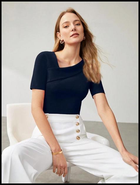 Gola Assimétrica Exclusiva: O grande diferencial desta camiseta reside em seu design de gola. A assimetria não é apenas um detalhe, mas um elemento que confere personalidade e um toque artístico à peça. Ela quebra a monotonia das camisetas tradicionais, atraindo olhares e elevando instantaneamente o nível de qualquer combinação. É a escolha perfeita para quem busca um estilo único, sem abrir mão da praticidade.