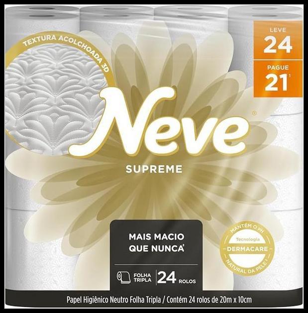 Neve Papel Higiênico Supreme Folha Tripla, 20m, Leve 24 Pague 21 Rolos — Visão Geral