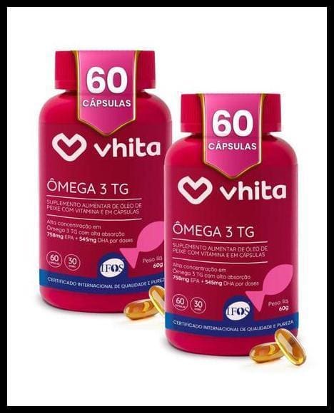 Detalhes importantes sobre o produto Ômega 3 1000mg TG – Importado e Rico EPA DHA Com Selo IFOS e Vitamina E de 60 cápsulas Vhita 2 unidades: