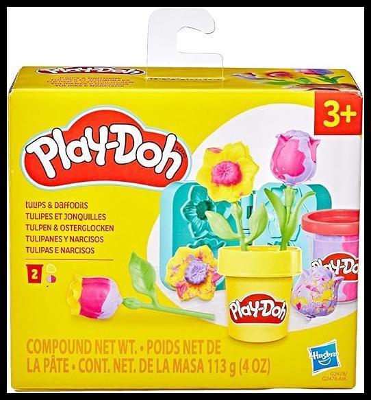Play-Doh, Massinha de Modelar Infantil, Florzinhas Tulipas e Narcisos – Conjunto de Brinquedo com Acessórios e 2 Potes – A partir de 3 Anos