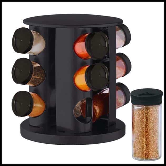 Porta Condimentos Temperos Giratório Potes Vidro Tampa Dosadora Preto