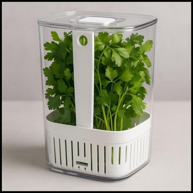 Pote Organizador De Temperos Verduras Geladeira 2,3L Com Escorredor Coentro Salsinha Manjericão OU — Visão Geral