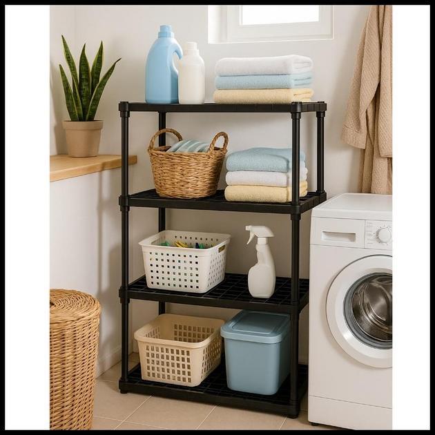 Os quatro andares de prateleiras oferecem amplo espaço para armazenamento, permitindo uma organização eficiente de diversos itens. A versatilidade é outro ponto forte: por ser resistente à umidade, ela é perfeita para cozinhas e banheiros, mas sua estética neutra também a torna ideal para salas, quartos, escritórios e lavanderias. A capacidade de otimização de espaço é inegável, transformando cantos subutilizados em áreas funcionais e organizadas.