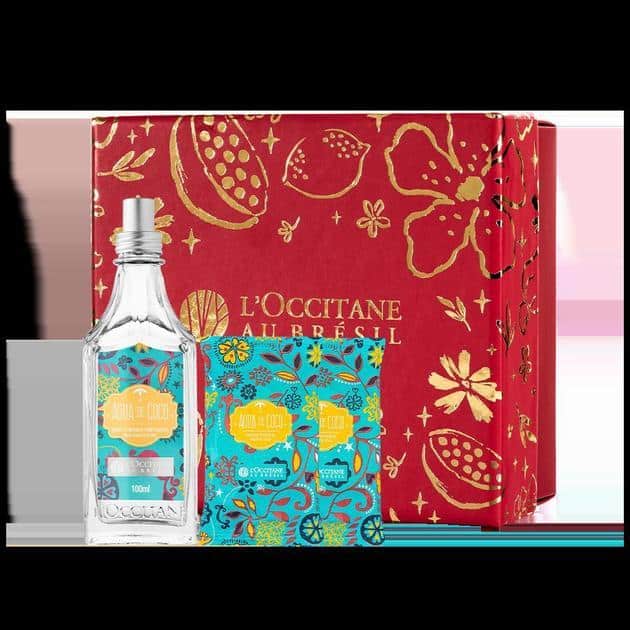 Conteúdo: spray corporal em frasco prático + sabonetes perfumados em embalagem presenteável.