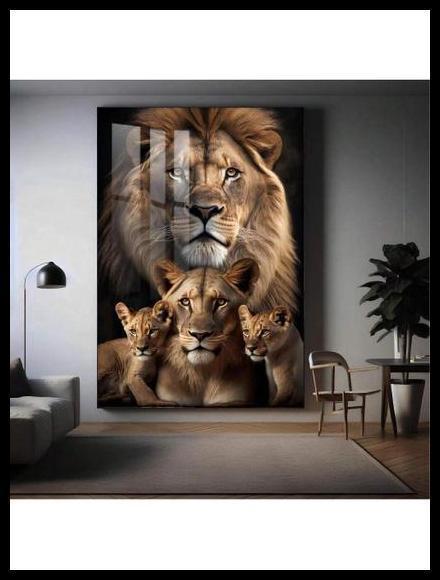 Famílias que Valorizam a União: Com sua temática de leões com filhotes, o quadro ressoa com aqueles que celebram os laços familiares e desejam expressar esse sentimento em sua decoração, criando um ambiente de conforto e afeto.