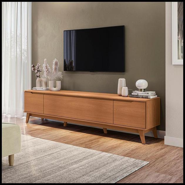 Outro grande diferencial do Rack Kappesberg 3 Portas Canela 218cm é a versatilidade. Por suas dimensões generosas, ele se torna um suporte ideal para TVs grandes, além de possibilitar uma decoração personalizada com itens que refletem a personalidade do usuário.