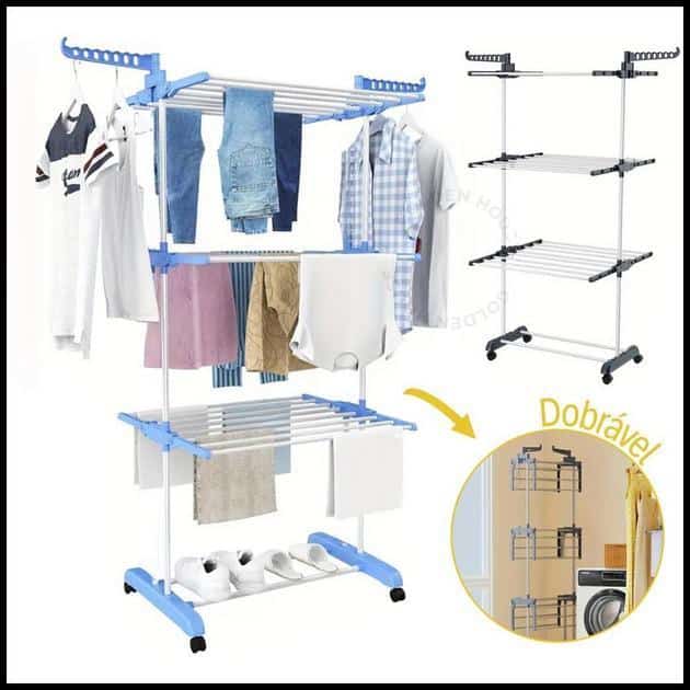 Modelo: Varal de chão com 3 andares e prateleiras de secagem.