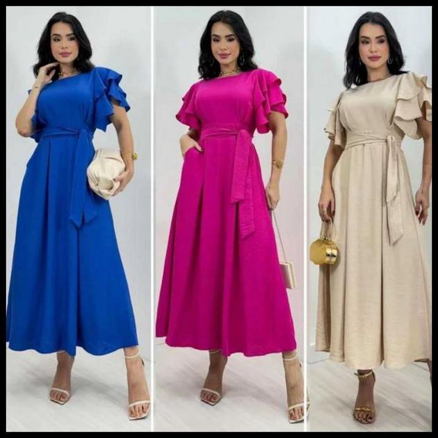 - Design com Manga Babado: As mangas com babados conferem um toque de delicadeza e feminilidade ao visual. Este detalhe sutil, porém marcante, adiciona um charme especial, tornando o vestido mais elegante e original. É um elemento que eleva a peça, diferenciando-a dos modelos básicos.